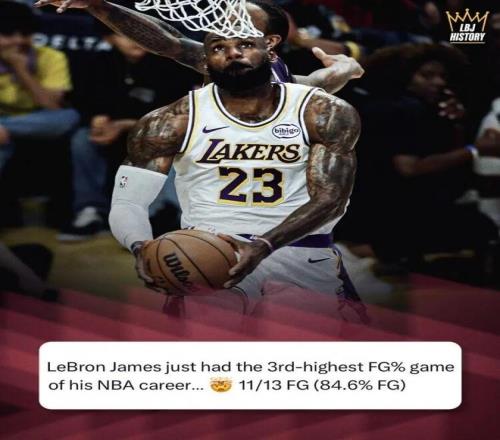 就在全明星投票話題熱議之際,湖人球星詹姆斯正迎來自己的41歲生日(當?shù)貢r間12月30日)。在湖人主場125-101大勝國王的比賽中,這是詹姆斯40歲的最后一場比賽,他交出了極為高效的表現(xiàn)——上場29分鐘,13投11中,三分2中1,罰球1中1,砍下24分3籃板5助攻2搶斷,正負值+20,84.6%的命中率不僅創(chuàng)下效力湖人時的新高,也是其個人職業(yè)生涯第三高。