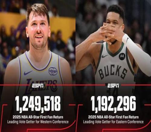先從數(shù)據(jù)統(tǒng)計(jì)來看,目前公布的西部票王,來自于詹姆斯隊(duì)友東契奇,以1249518票斷檔領(lǐng)跑所有人。而東部票王,則給到了字母哥,統(tǒng)計(jì)票數(shù)1192296票。