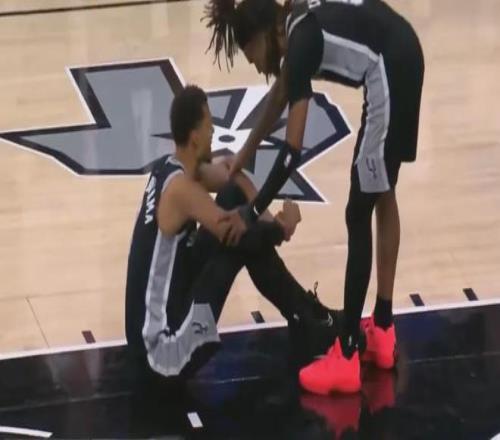 第四節(jié)剛開始,文班亞馬搶籃板,落地時不小心膝蓋過度伸展了。
