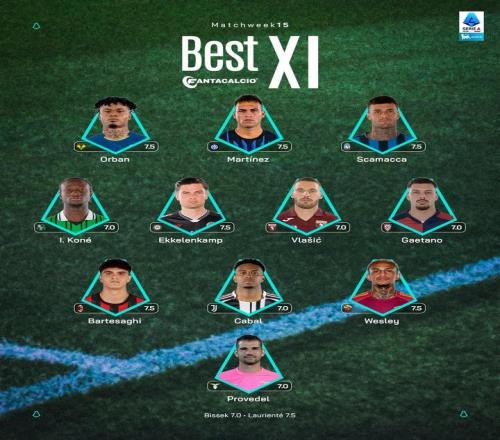 意甲第15輪最佳陣容:勞塔羅、巴爾泰薩吉、卡瓦爾入選